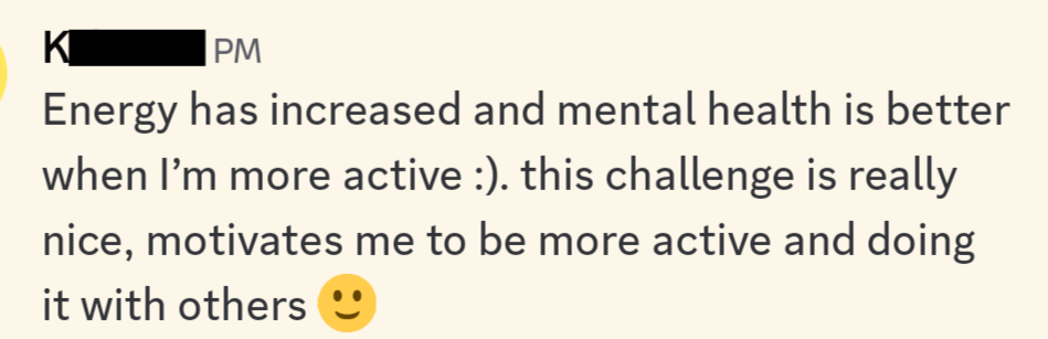 All participants will be in a group chat hosted on WhatsApp. Each day, you will submit proof (a screenshot of your step count, photo of your smartwatch etc.) to the group.